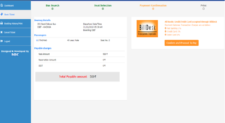 Step 7.) Details of the Ticket will be shown, If the Details are correct, Please Click on "Confirm and Proceed to Pay" Button for Payment.