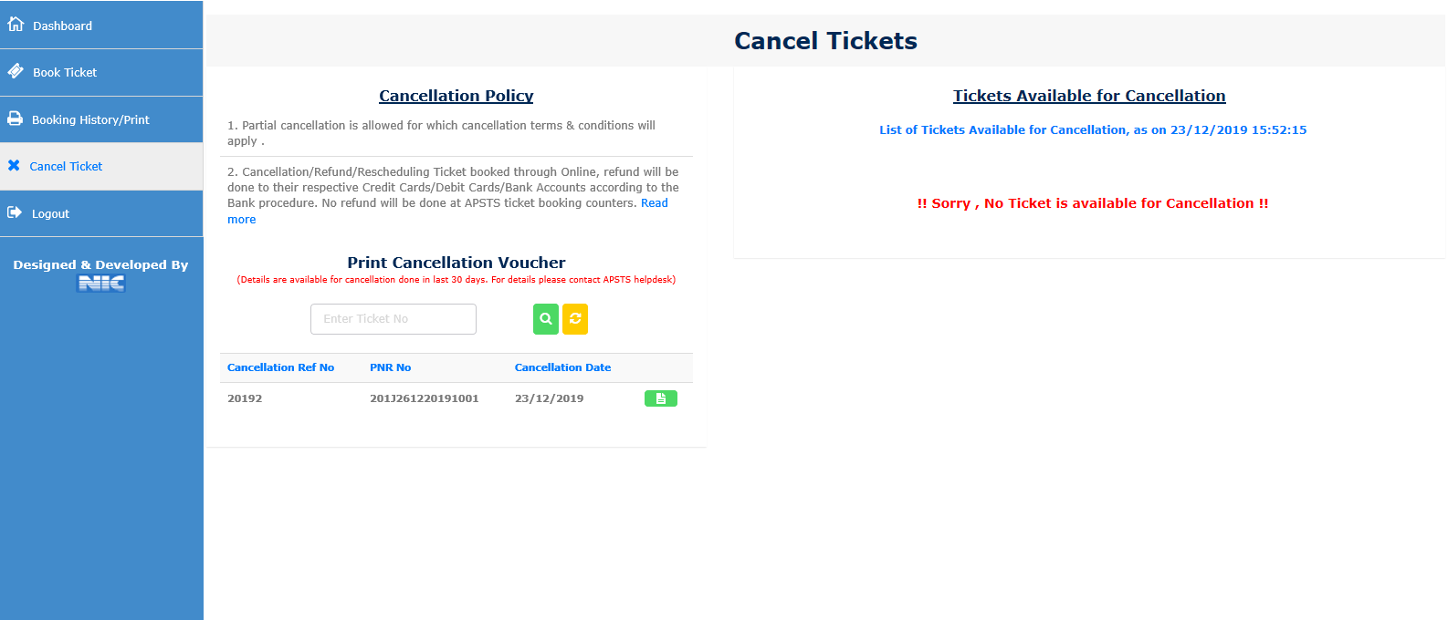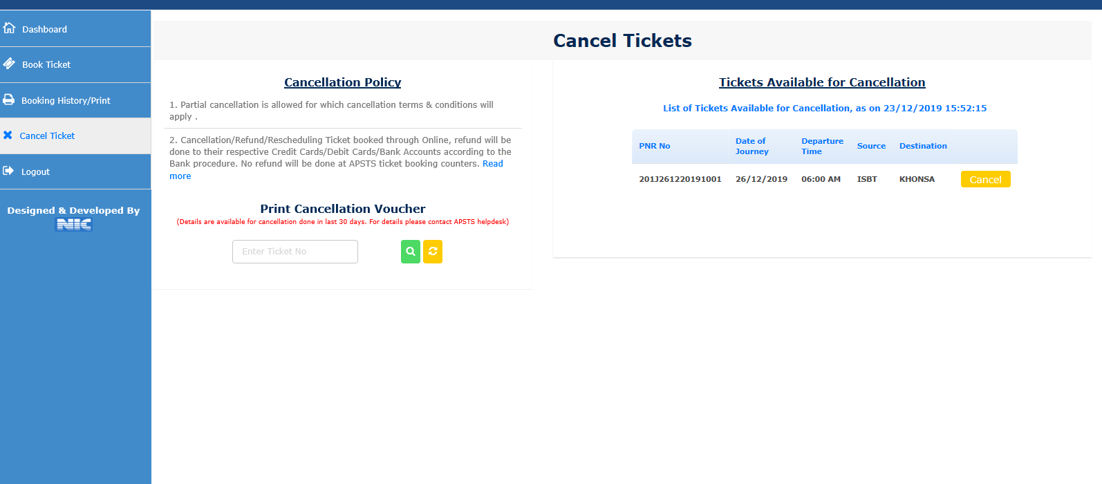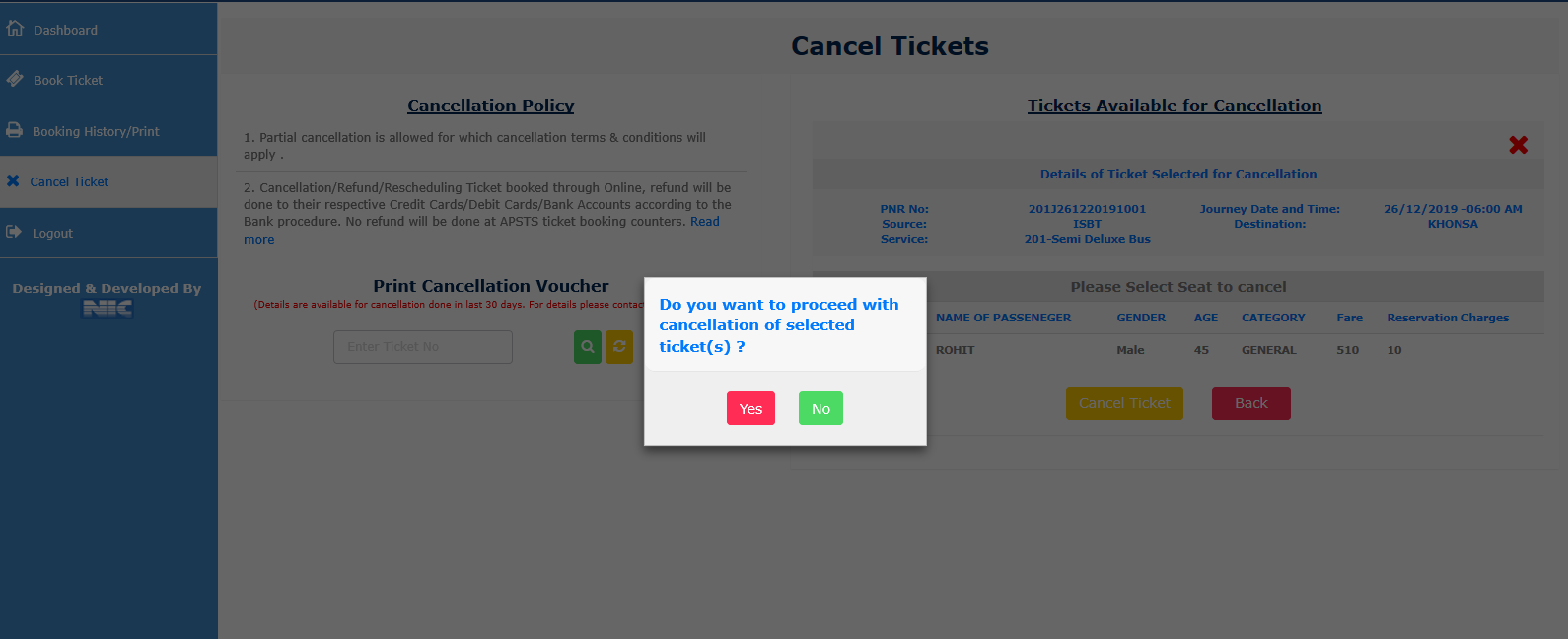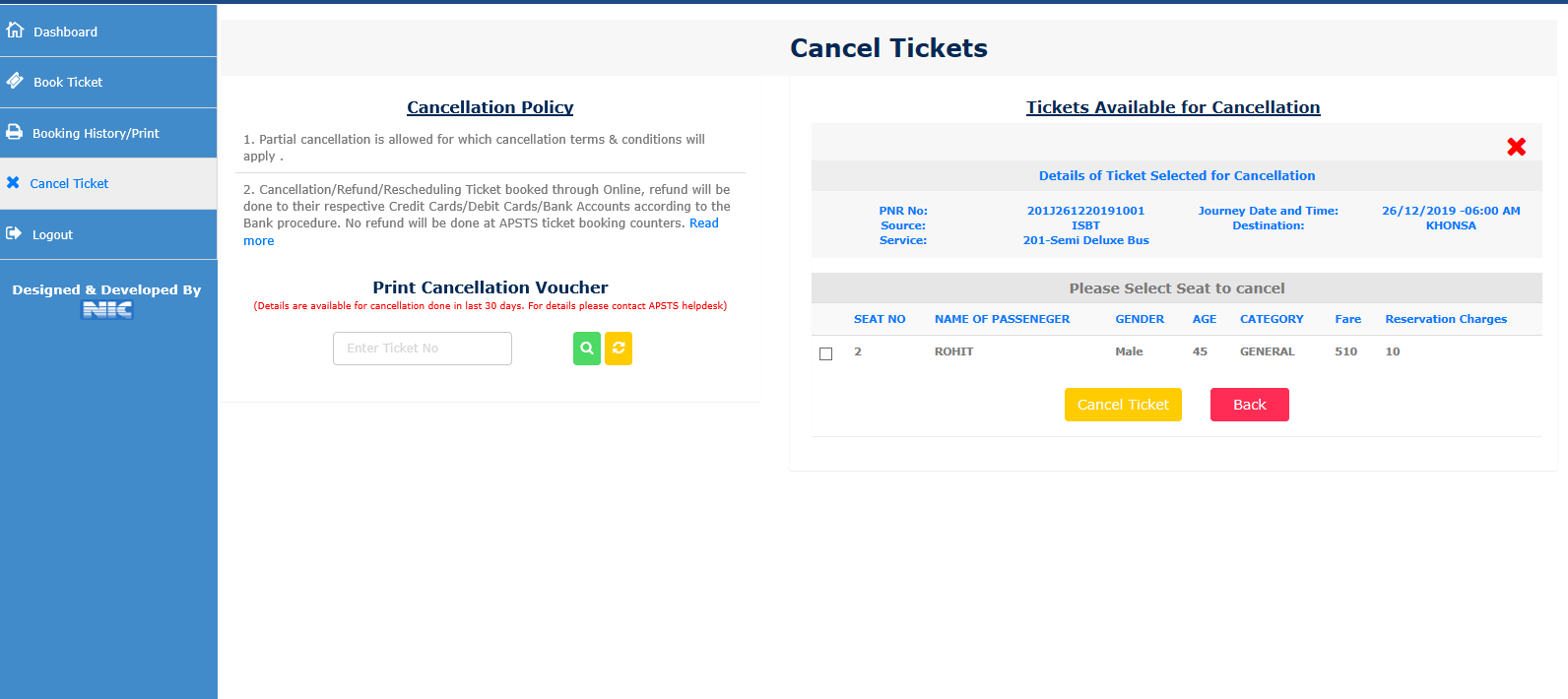 Step 9.) After successful payment, Ticket will be generated and can be printed.